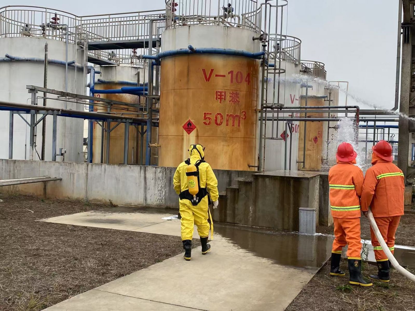 儲罐區(qū)甲苯泄漏著火消防演練
