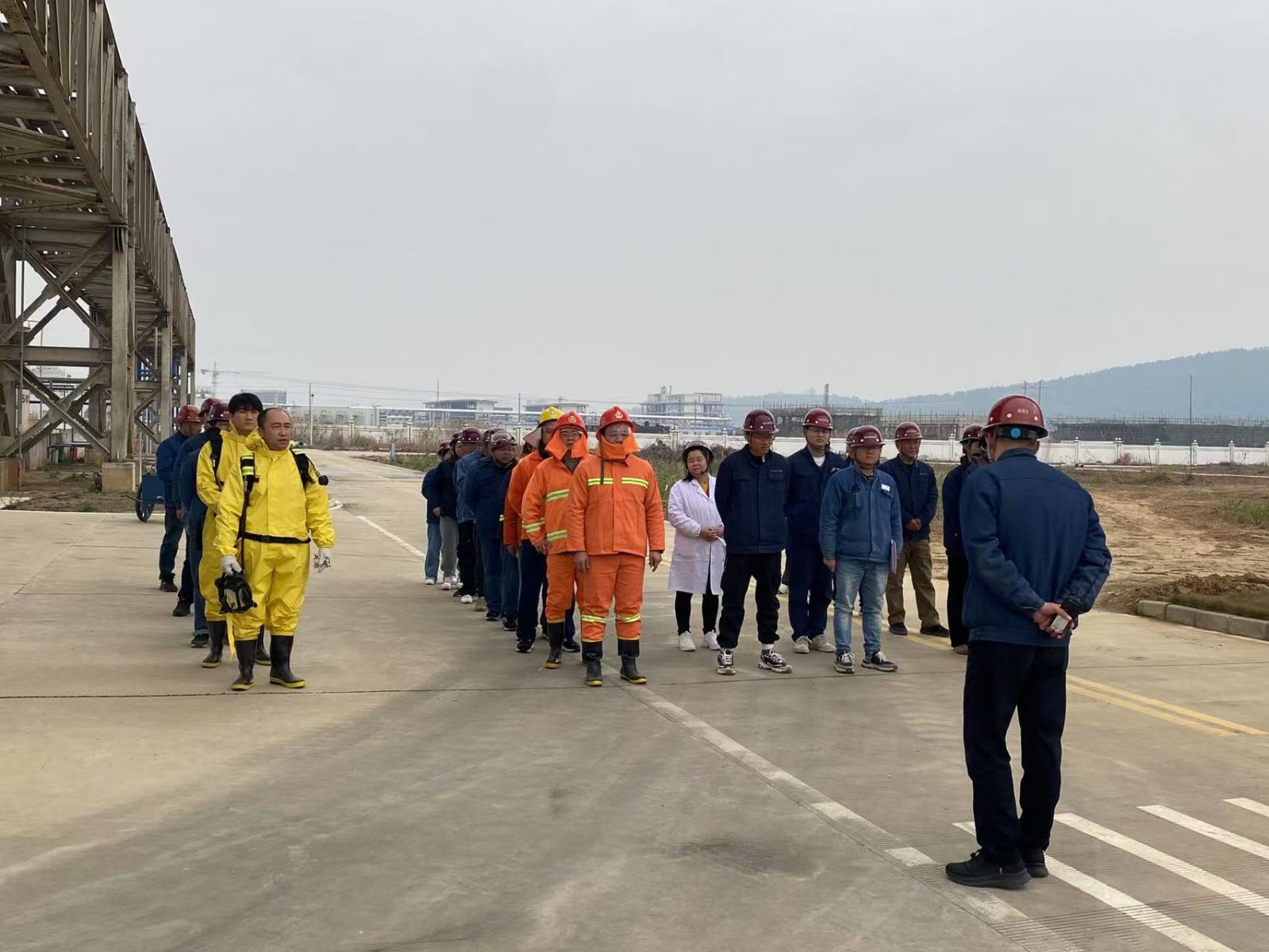 演練的內容是模擬甲苯泄漏著火現場人員急救、、消防救火、撤離等。演練由事故應急總指揮、應急救援組、維修搶險組、警戒疏散組、醫(yī)療救護組、環(huán)境監(jiān)測組、后勤保障組、新聞信息組組成。